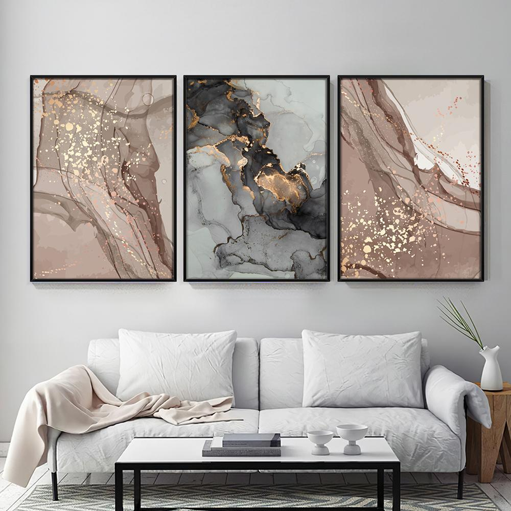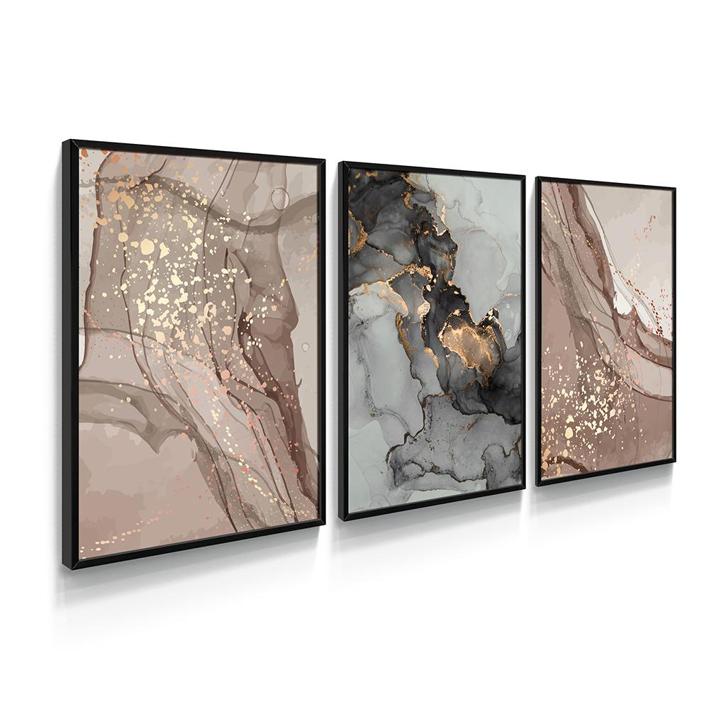 O conjunto Abstrato Mármore une elegância e sofisticação por meio de formas fluidas que remetem ao efeito marmorizado, criando uma composição artística marcante. As cores neutras, combinadas a detalhes em dourado, trazem brilho e profundidade, adicionando um toque de luxo sutil ao ambiente.
