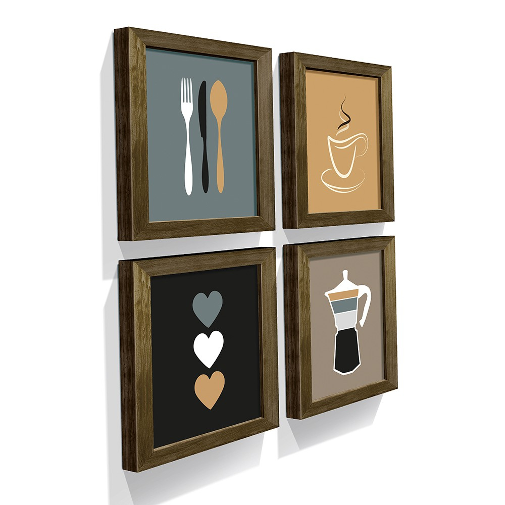 Este conjunto de quatro quadros decorativos traz uma proposta minimalista e moderna, ideal para compor cozinhas, cantinhos do café ou áreas gourmets com estilo e personalidade. Cada peça apresenta elementos simples, porém marcantes, que criam uma composição harmoniosa e acolhedora. As cores neutras e suaves possibilitam fácil combinação com diferentes tipos de ambientes.