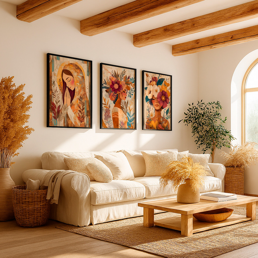 Perfeito para salas, quartos ou escritórios, esses quadros adicionam charme e aconchego ao ambiente. A paleta em tons terrosos harmoniza com decorações modernas, minimalistas ou rústicas, tornando o trio versátil e elegante para diferentes estilos de interiores.