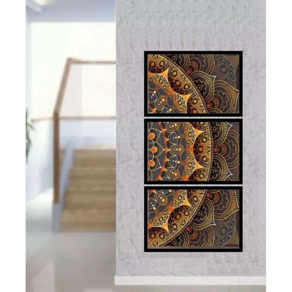Ideal para qualquer ambiente, este trio de quadros une sofisticação e espiritualidade, transmitindo serenidade e elegância. Seus tons quentes em contraste com o fundo escuro conferem profundidade e charme atemporal à decoração. Perfeito para quem busca um ambiente com personalidade e significado, o “Mandala Dourada” é uma peça que inspira tranquilidade e bem-estar, além de elevar o estilo do espaço com um toque artístico e contemporâneo.