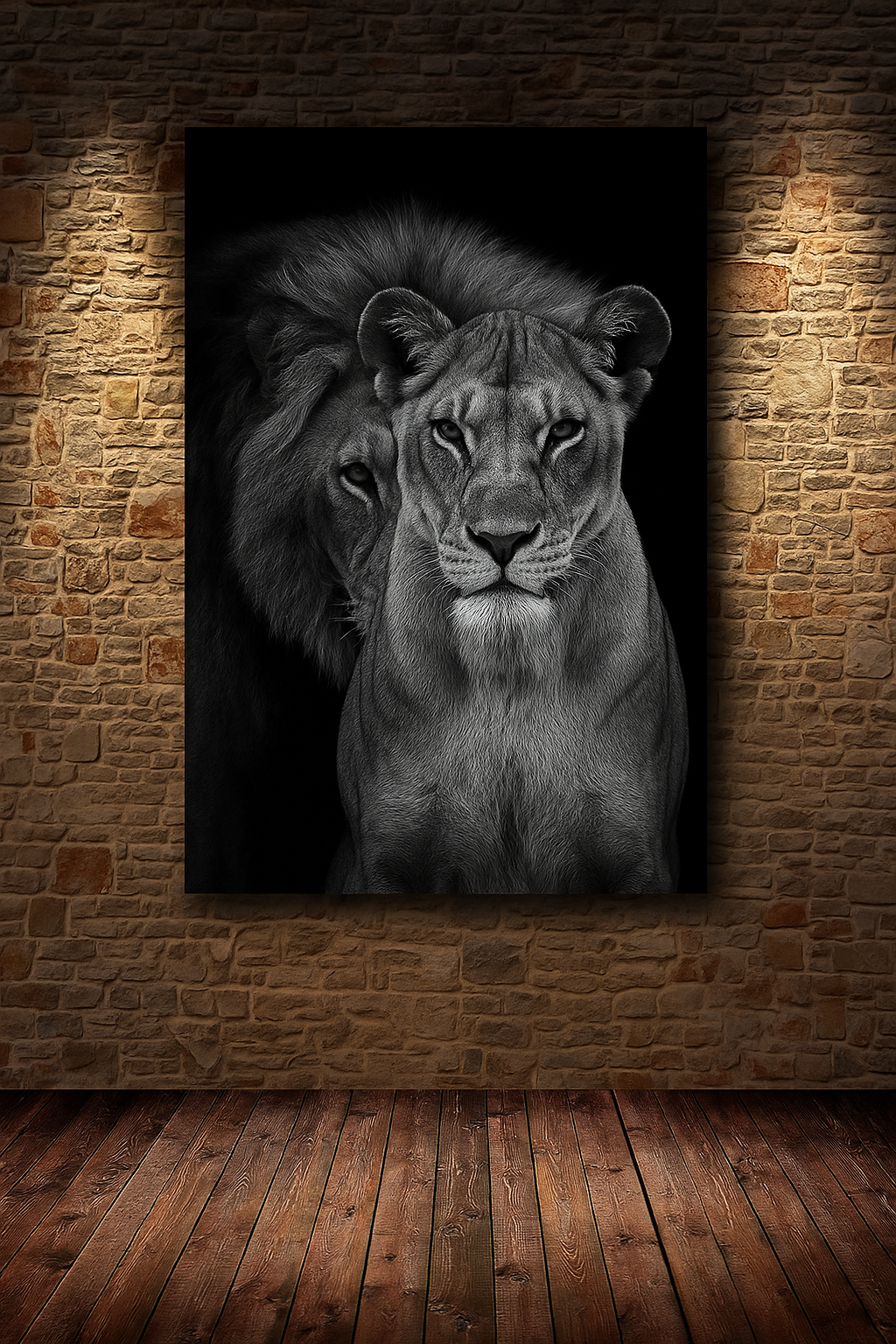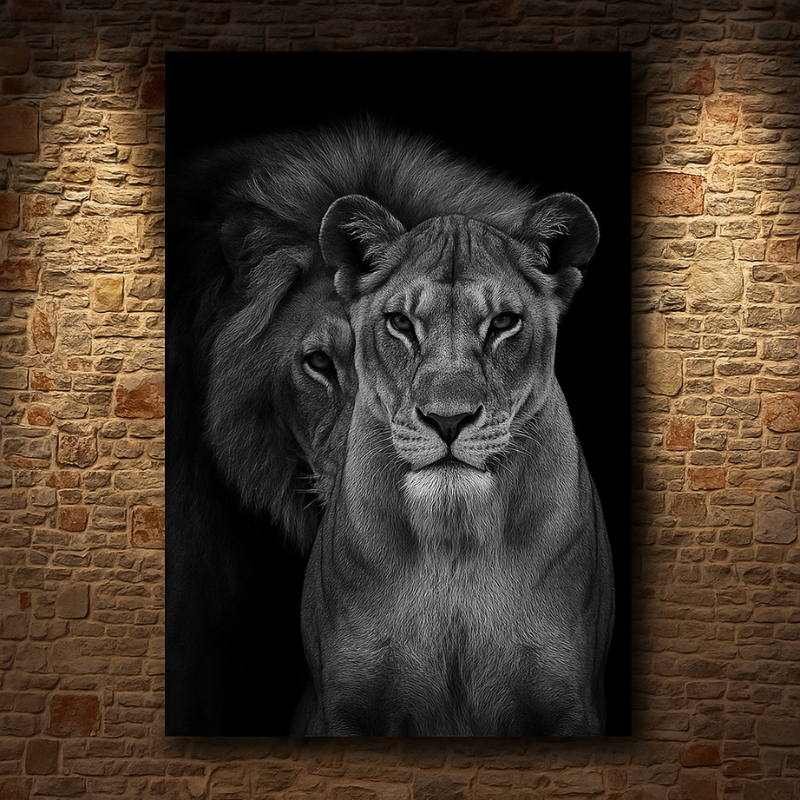 O quadro “Realeza Selvagem” é uma obra que transmite imponência, união e proteção. A imagem do leão e da leoa lado a lado é um símbolo de liderança, parceria e força inabalável. Perfeito para quem busca inspiração e deseja trazer para o ambiente um toque de poder e equilíbrio.