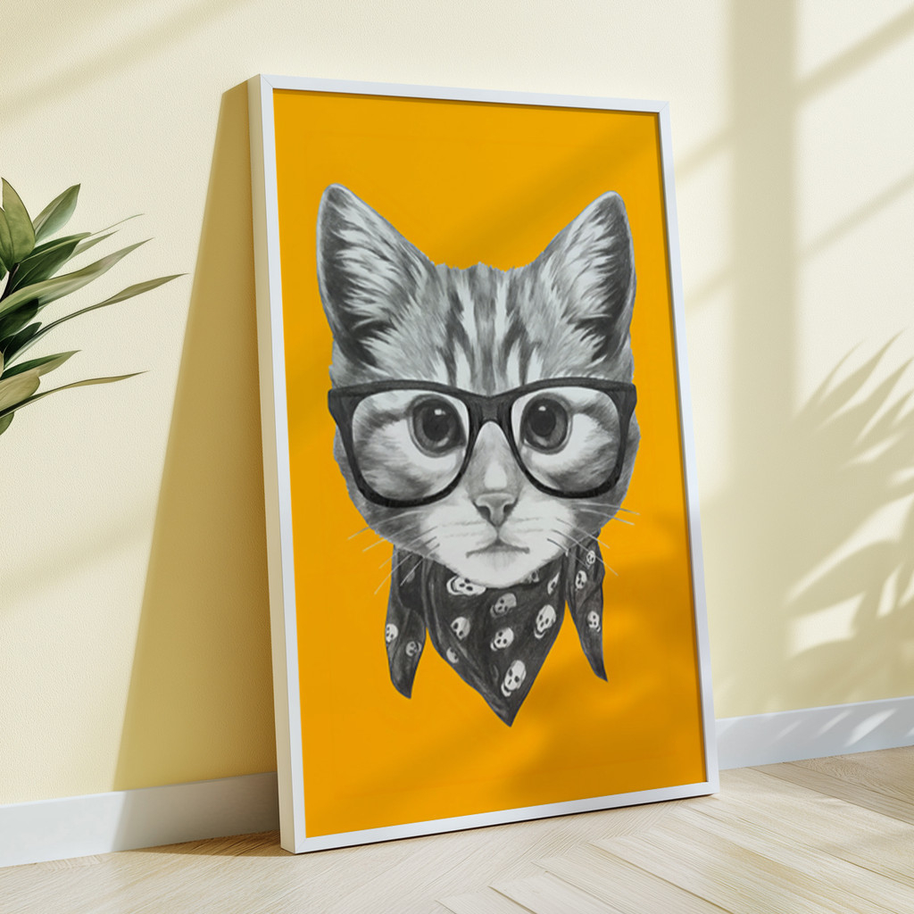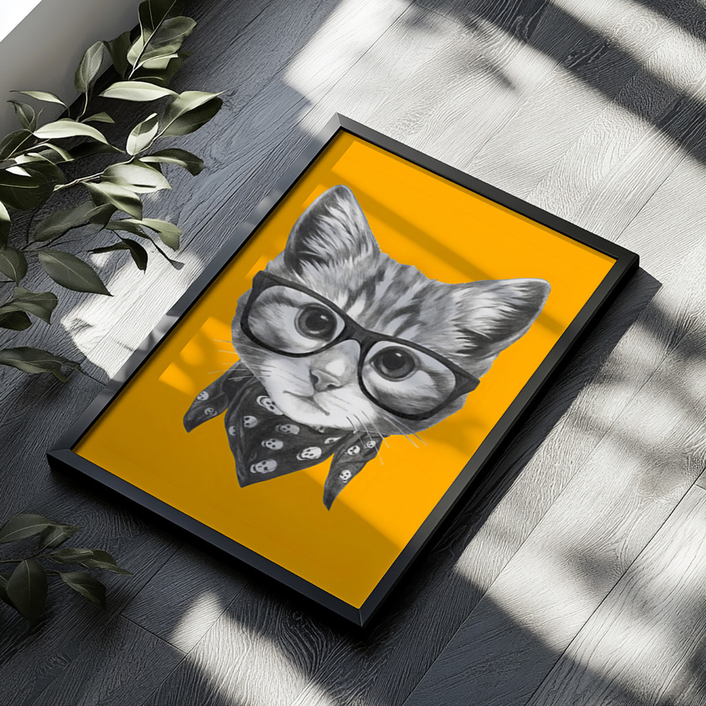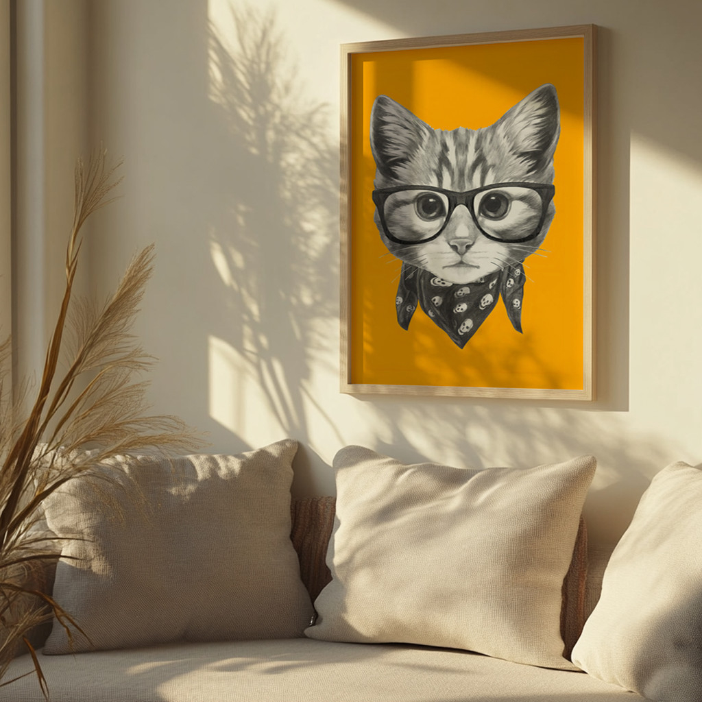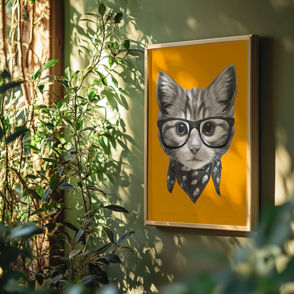 Injete uma dose de personalidade ousada e humor inteligente na sua decoração com o quadro "Gato Pop". Se você procura fugir do óbvio e quer uma peça que arranque sorrisos, acabou de encontrar. O olhar perspicaz deste felino de óculos quebra a monotonia de qualquer parede, trazendo uma vibe jovem e cheia de atitude para o seu dia a dia.