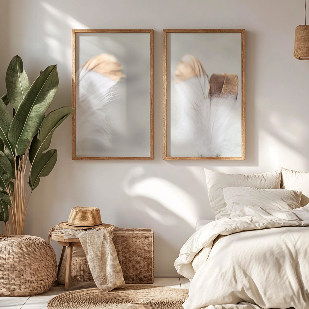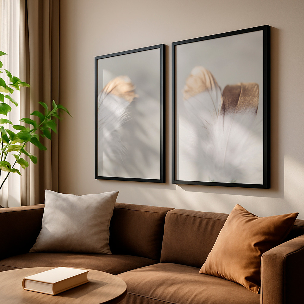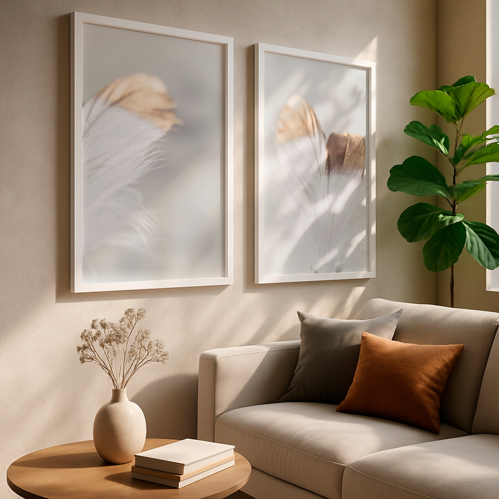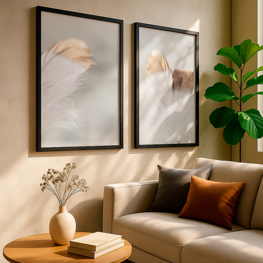 Este conjunto de duas telas traz uma composição leve e contemplativa, inspirada na delicadeza das penas em tons neutros e naturais. As imagens apresentam formas orgânicas e sutis, criando uma atmosfera de calma e aconchego, perfeita para ambientes que priorizam o bem-estar e a harmonia visual.