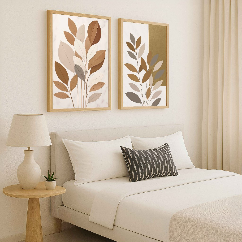 O Quadro Com Moldura Outono de Luxo traz a essência da natureza em seu estado mais acolhedor. As formas delicadas das folhas e os tons terrosos transmitem serenidade, aconchego e equilíbrio, tornando o ambiente mais harmonioso e sofisticado. Cada quadro convida à contemplação, evocando a beleza simples e elegante das estações naturais.