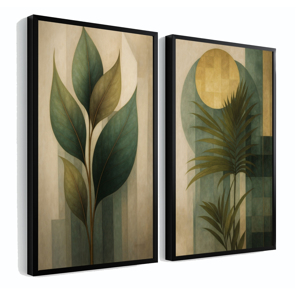 O Quadro Com Moldura Vida Natural une arte e natureza em uma composição elegante e contemporânea. As formas geométricas e tons esverdeados criam uma atmosfera de serenidade, perfeita para ambientes que buscam equilíbrio e sofisticação.