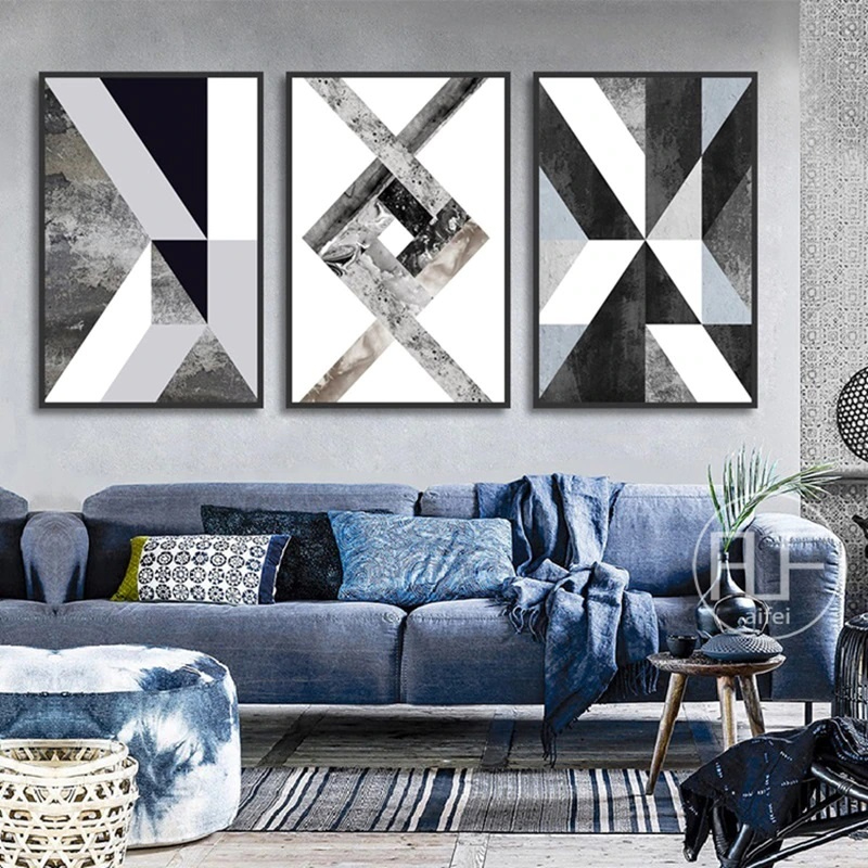 A mistura de ângulos e sobreposições geométricas dá movimento e profundidade às peças, tornando-as perfeitas para ambientes contemporâneos e cheios de personalidade. Ideal para salas, escritórios ou espaços modernos, este conjunto transforma a parede em um ponto focal de destaque e estilo.
