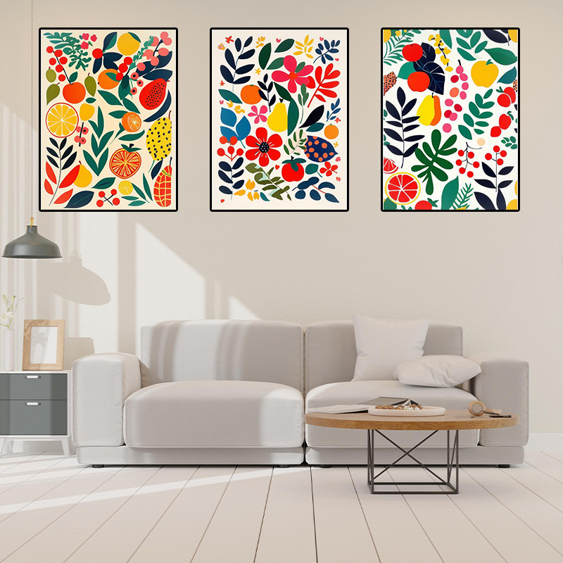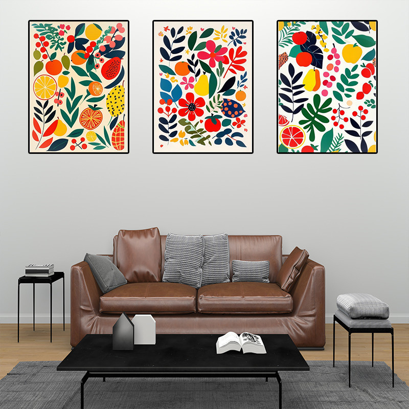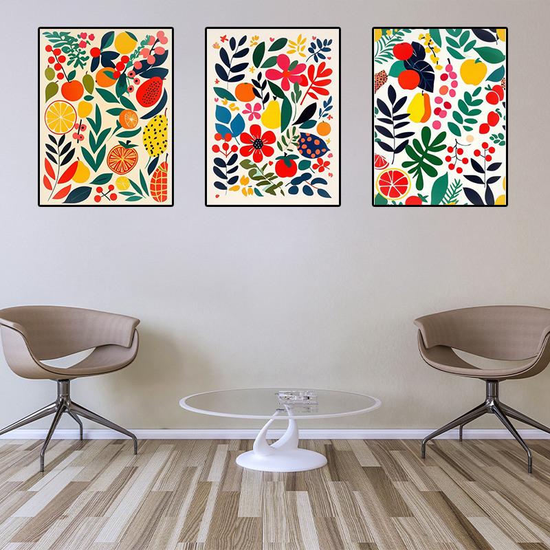 O Quadro Salada-Mista traz um design alegre e vibrante que combina o frescor das frutas tropicais com a leveza das folhagens. Cada peça é marcada por contrastes intensos e cores vivas que iluminam o ambiente, tornando-se uma opção ideal para quem busca um toque criativo e descontraído na decoração.