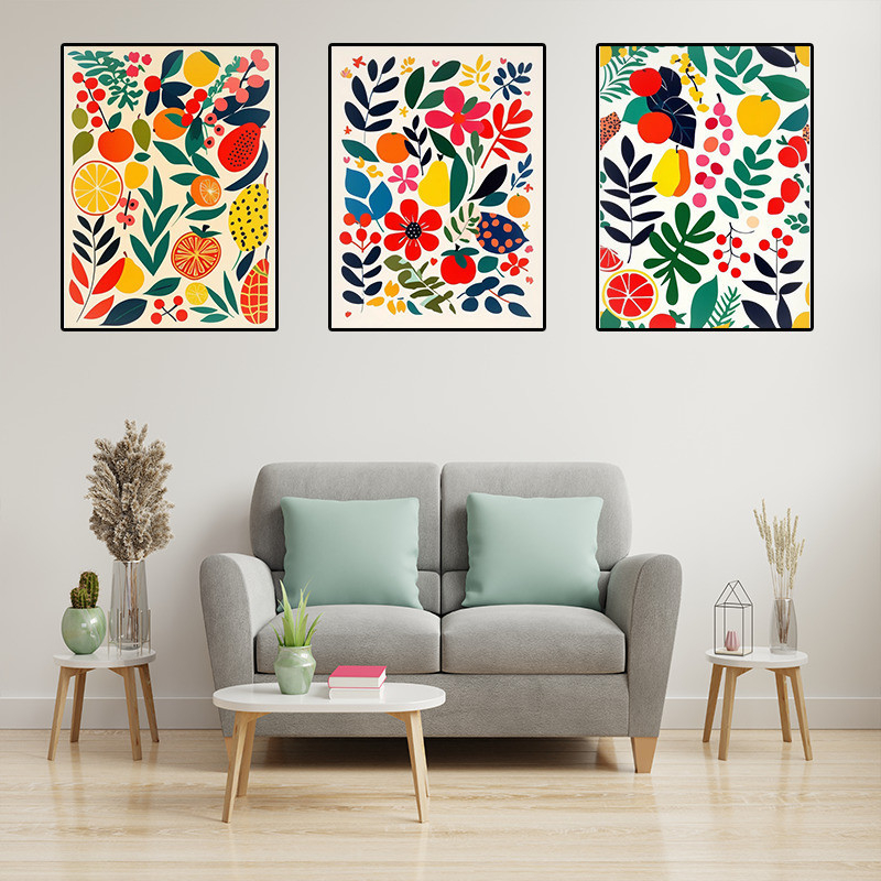 Mais do que uma decoração, este trio é uma explosão de cor e estilo, transformando paredes neutras em pontos de destaque. A harmonia entre formas e tonalidades faz com que os quadros sejam versáteis e se adaptem a diferentes estilos de interiores, do contemporâneo ao casual.