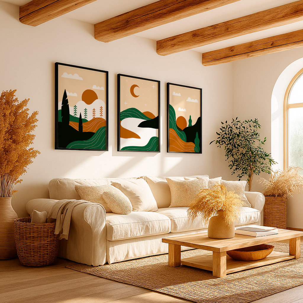 Aventure-se pela beleza rústica e lúdica do conjunto Colinas do Horizonte, uma trilogia que celebra a conexão com a terra e o equilíbrio das formas orgânicas. Com uma paleta quente e acolhedora, esta peça é a chave para transformar sua sala ou quarto em um espaço de acolhimento e estilo único.