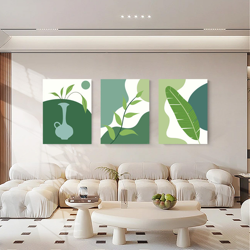 Com design clean e elegante, esses quadros são perfeitos para salas de estar, escritórios ou áreas de relaxamento, proporcionando leveza e harmonia visual. A paleta de cores em verde e branco remete ao equilíbrio da natureza, tornando o conjunto uma escolha versátil para diferentes estilos de decoração.