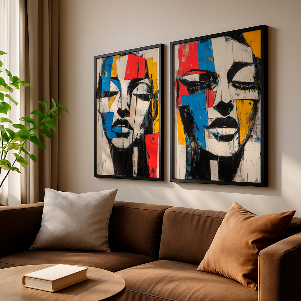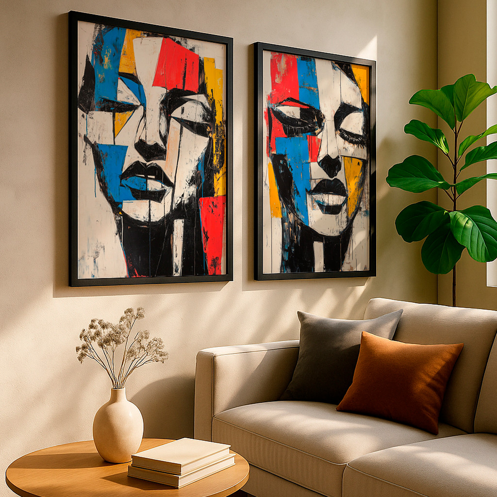Inove completamente a atmosfera do seu ambiente com a audácia e a energia da dupla Faces da Metrópole. Para quem respira criatividade e valoriza o design contemporâneo, esta obra é a representação máxima da vanguarda artística. Ao invés de uma simples decoração, você estará levando para casa uma explosão de personalidade que instiga o olhar, desperta a imaginação e se torna imediatamente o centro das atenções de qualquer espaço.